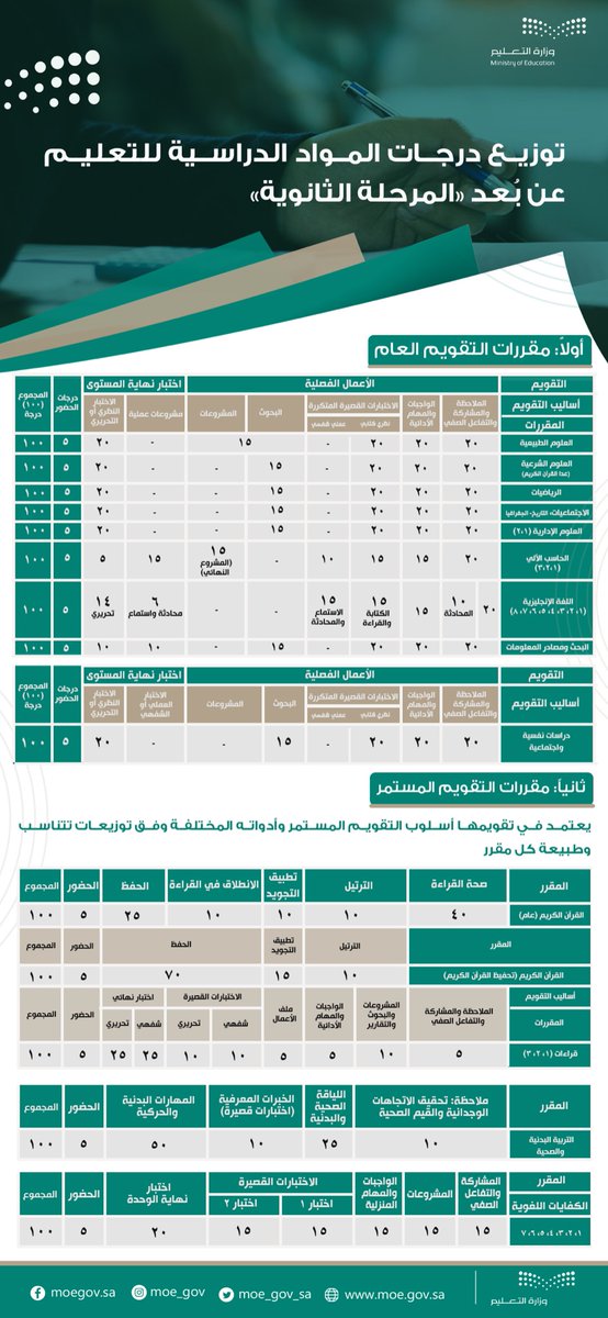 وزارة التعليم عام On Twitter بيان وزارة التعليم عن الاختبارات النهائية للفصل الدراسي الأول يحدد عدة أساليب تقويم لمقررات المرحلة الثانوية Https T Co D3f3imitvp Https T Co Smtn8yamrd