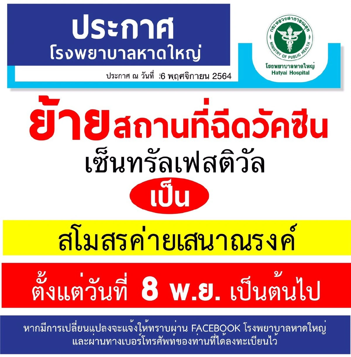 21 กยน ฉดวคซน ไฟเซอร เขมแรก ใหนกเรยนสงกด กทม. เปดลงทะเบยนฉดวคซนไฟเซอรตงแตวนน - 3 พฤศจกายน 2564 โดยคณสมบตของผทลงทะเบยน ตองมอาย 12ปขนไป อาศยอยใน และ นอกเขตเทศบาลนครหาดใหญ. ศนยฉดวคซนกลางบางซอ ประกาศแลว เปดลงทะเบยนจองวคซนสตรไขวแบบใหม แอสตรา ไฟ.