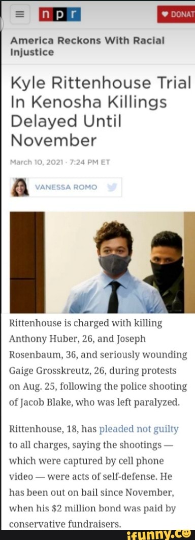 America Reckons With Racial Injustice Kyle Rittenhouse Trial In Kenosha Killings Delayed Until November Rittenhouse is charged with killing Anthony Huber 26 and Joseph Rosenbaum 36 and seriously wounding Gaige Grosskreutz 26 during protests on Aug. Today is the day the state has suggested they will call Gaige Grosskreutz to the stand. Gaige Grosskreutz admits he saw mob attacking Kyle Rittenhouse and approached him with his gun drawn.