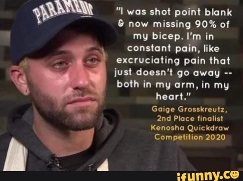 Gaige grosskreutz memes. Grosskreutz 27 who had his gun in his hand as he stepped toward Rittenhouse was severely wounded moments after Rittenhouse fatally shot two others in the streets of Kenosha. Gaige Grosskreutz who was armed with a pistol on the night of the shooting testified that his hands were raised when Rittenhouse pointed the rifle. Draw Add Image Spacing.